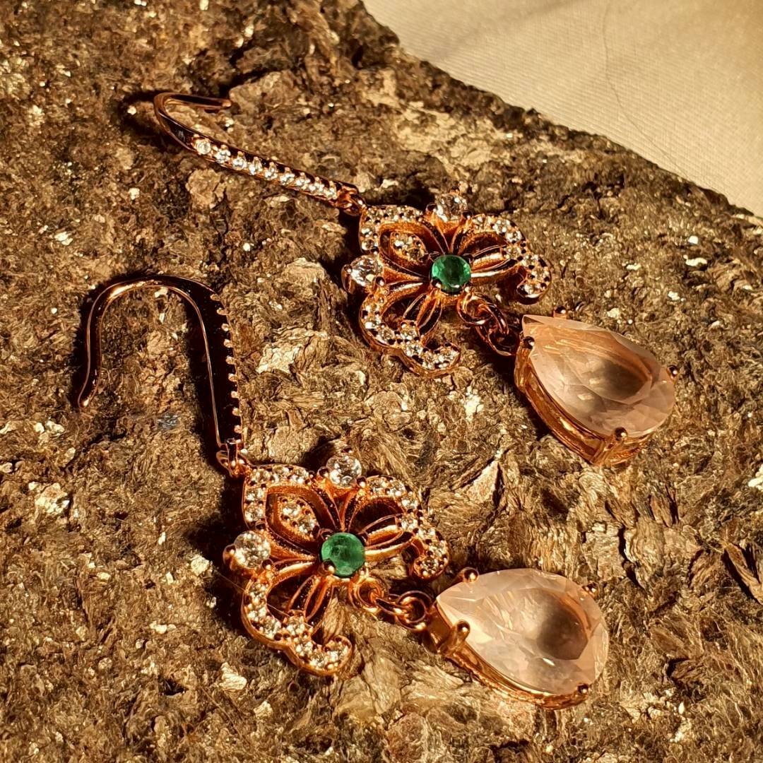 I9J/6.7g/S92.5/Earrings Rose Quartz, Emerald