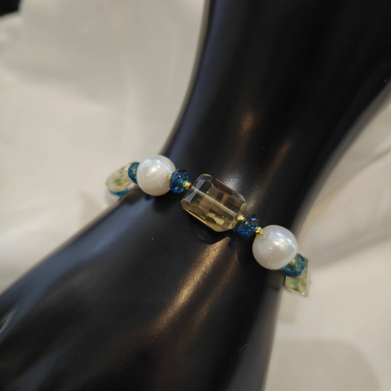 Freshwater pearl with clear quartz stone sliver92.5 setting