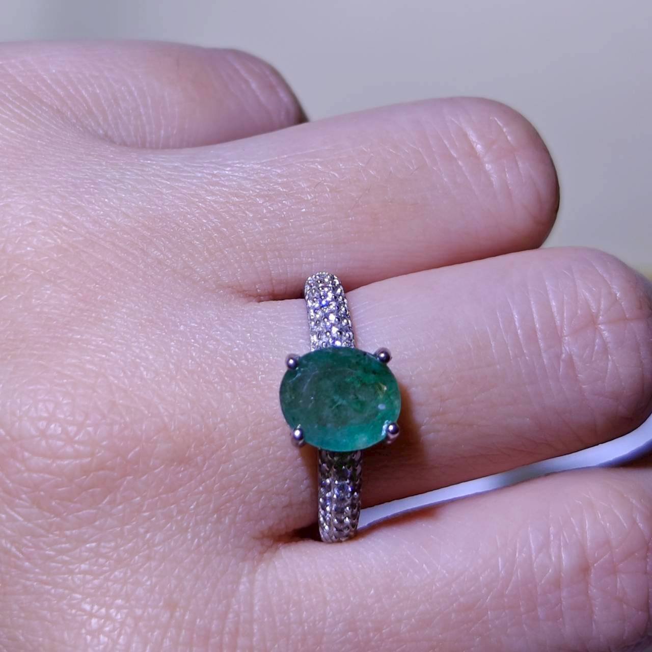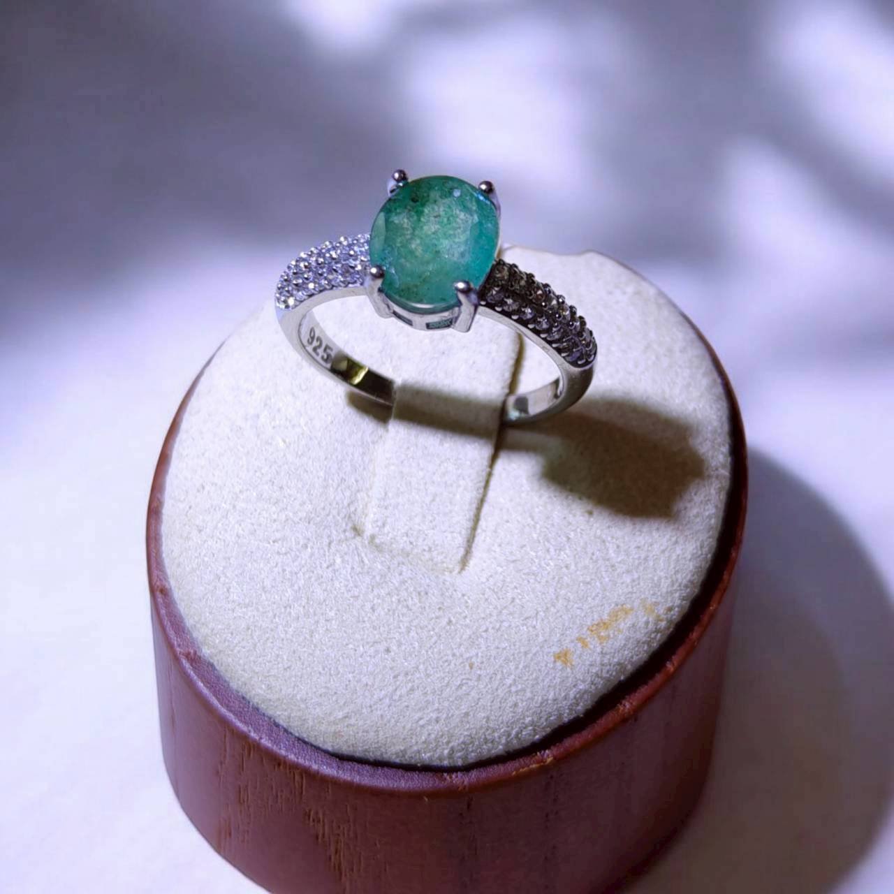 แหวนเงินประดับ/มรกต,เพชรรัสเซียตัวเรือน/เงิน92.5ไซส์แหวน/56 Fix size